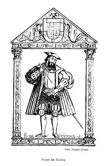 The governor Nuno da Cunha intended to blockade Diu and cut it off from any supplies but as he calculated that that Bassein might interfere with this plan, he set out against this city in late 1532 with 150 sail and 3,000 Portuguese soldiers plus 200 Kanarese auxiliaries.[21] In January 1533 the Portuguese reached Bassein, which was strongly fortified and defended by 12,000 men. Cunha divided his men in three squadrons and attacked the city from three angles.[21] The Gujaratis were discouraged at the first attack and withdrew to the fort, from which they were driven out, having lost 600 dead.[21] The Portuguese captured 400 pieces of artillery with a large supply of ammunition and after having ravaged the sorrounding countryside they razed the fort.[21]