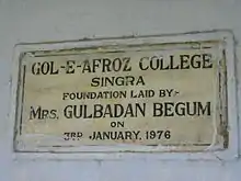 Gulbadan Begum (Bengali: গুলবদন বেগম; 1923, Hulhulia, Natore – May 8, 2005, Dhaka) was a Bengali social worker, and former head of the princely Singranatore family, the eldest daughter of Jalaluddin Mirza, the Zamindar of Natore.