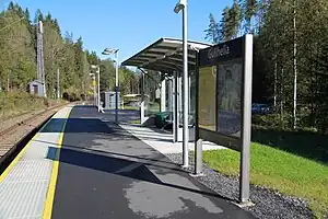 Gullhella Station (Norwegian: Gullhella holdeplass) is a railway station located at Gullhella in Asker, Norway on the Spikkestad Line. The station was opened as part of the Drammen Line on 15 July 1937, but in 1973 the new Lieråsen Tunnel opened through Lieråsen, and the old part of the Drammen Line was transformed to a commuter train line.