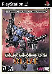 GunGriffon Blaze (ガングリフォン ブレイズ, GanGurifon Bureizu) is a video game developed by Game Arts and published by Capcom and Working Designs in 2000, and by Swing! Deutschland in Europe in 2002 for PlayStation 2. The game was a launch title on the PlayStation 2 in North America.