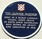 In 1678, with the outbreak of the Popish Plot, a Jesuit priest, David Lewis was arrested at St Michael's Church, Llantarnam. He prayed in the Gunter Mansion chapel before being executed in Usk.[1]