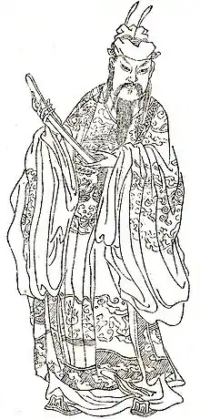 Guo Ziyi (Kuo Tzu-i; Traditional Chinese: 郭子儀, Simplified Chinese: 郭子仪, Hanyu Pinyin: Guō Zǐyí, Wade-Giles: Kuo1 Tzu3-i2) (697 – July 9, 781[1]), posthumously Prince Zhōngwǔ of Fényáng (汾陽忠武王), was a Chinese military general and politician who ended the An Lushan Rebellion and participated in expeditions against the Uyghur Khaganate and Tibetan Empire. He was regarded as one of the most powerful Tang generals before and after the Anshi Rebellion. After his death he was deified in Chinese folk religion as the God of Wealth and Happiness (Lu Star of Fu Lu Shou). Guo Ziyi is depicted in the Wu Shuang Pu (無雙譜, Table of Peerless Heroes) by Jin Guliang.