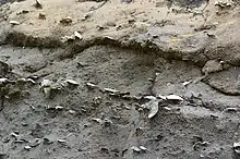 The bed is part of the larger Toukeshan Formation (頭嵙山層), a Pleistocene-era formation. The fossils date from between 1,030,000 to 460,000 years ago and are embedded in shale. The shells were likely located around 20 metres (66 ft) to 50 metres (160 ft) underwater before being covered. Fossils from 135 different species have been identified: most shells from the Pecten genus, but shells from Chlamys, Anadara, Arca, Eucrassatella, Nassarius, Niotha, Bursa, Turritella, and Murex have also been identified. Some suggested that the high density of fossils is due to repeated storms pushing the shellfish into this area.[2][3]