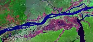 The Gurupa várzea ecoregion is named after the Ilha Grande de Gurupá, an alluvial island in the mouth of the Amazon.[1] The várzea extends along the lower Amazon River from the mouth of the Tapajós down to the mouth of the Xingu River. It has an area of 984,195 hectares (2,432,000 acres).[2] The Tapajós–Xingu moist forests lie to the south and the Uatuma–Trombetas moist forests to the north. The Monte Alegre várzea is upstream and the Marajó várzea is downstream along the Amazon.[3]