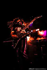 Konstantinos Karamitroudis[1][2] (born 12 September 1980), better known as Gus G, is a Greek heavy metal guitarist. He currently plays with his band Firewind. He has also played in Mystic Prophecy, Nightrage, Arch Enemy, Dream Evil and Ozzy Osbourne's band.