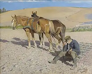 He began his education at the Per Brahe Secondary School, from 1883–1885. Having shown an interest in and aptitude for art, the painter Georg von Rosen was sufficiently impressed to recommend that he should receive professional art instruction. He also suggested that Germany would be a more suitable place for those studies than Paris. Accordingly, he spent the years 1886 to 1889 at the Academy of Arts, Berlin. From 1889 to 1890, he was in Norway, applying what he had learned. After returning to Berlin, he came under the influence of the Dachau School, which involved a style of painting known as "heimat-kunst" (home art). In 1895, he returned to Sweden and, from 1896 to 1901, had a studio in Stockholm where he specialized in portraits.[1]