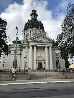 Gustaf Vasa Church (Swedish: Gustaf Vasa kyrka) is a church located in the Vasastaden district of Stockholm, Sweden. Inaugurated in 1906 and named after 16th century King Gustav Vasa, it was designed by architect Agi Lindegren in the Baroque Revival style. Situated between two busy avenues partially lined with trees, its dome rises 60 metres (200 ft) above the nearby Odenplan plaza. The floor plan is in the shape of a Greek cross and seats 1,200 people, making it one of the largest churches in Stockholm.[1][2]