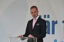 ![]() Gustav Kasselstrand speaking at Alternative for Sweden's meeting on the island of Långholmen in Stockholm on 11 August 2018 | |