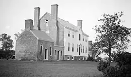 South elevation of Dr. Gustavus Brown's home Rose Hill on Rose Hill Road, vicinity of Port Tobacco, Charles County, Maryland. Built late 18th Century, restored 1937. Photograph by Thomas T. Waterman, 1940, for the Historic American Buildings Survey.