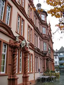 The Gutenberg Museum is one of the oldest museums of printing in the world, located opposite the cathedral in the old part of Mainz, Germany. It is named after Johannes Gutenberg, the inventor of printing from movable metal type in Western Europe. The collections include printing equipment and examples of printed materials from many cultures.[1][2][3]