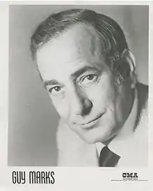 Guy Marks (October 31, 1923 – November 28, 1987[1]) was an American actor, comedian, singer and impressionist. A familiar face on TV sitcoms and variety shows of the 1960s and 1970s, he appeared regularly on The Ed Sullivan Show, The Merv Griffin Show, The Dean Martin Show, The Mike Douglas Show, and The Joey Bishop Show. He had a natural gift for mimicry, and his impressions of celebrities such as Humphrey Bogart, Gary Cooper, Boris Karloff, and many others were considered among the best. However, he also could imitate a housefly on a slippery oil cloth, neon signs, alligators, driftwood furniture, rubber bands, frozen chickens, frogs, praying mantis, and — his favorite — an ostrich, all of which found their way into his act or in characters he played on TV.