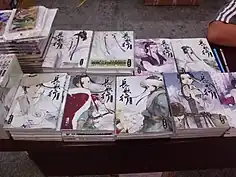 Guzhuang can be found in Manhua, such as gufeng manhua (lit. 'ancient-style manhua') and shaonu manhua.[30]: 288–289 Shaonu manhua is a similar genre and a derivative of the shoujo manga;[30]: 286 it originally followed similar visual aesthetics as the Japanese shoujo manga in its early development before starting to develop Chinese characteristics between the 2000s and early 2010, after 2010s, shaonu manhua became distinct from the Japanese shoujo manga both in terms of visual aesthetics and storyline.[30]: 288 In the mid-2010s, gufeng manhua and gufeng shaonu manhua (i.e. stories adapted from Chinese history and legendary tales, and fictional love stories set in imperial China) became popular.[30]: 289 Examples of guzhuang depicted in manhua can be found in Chang an Fantastic Night (长安幻夜) by Han Lu,[30]: 291 You Yuan Jing Meng (游园惊梦) by Xia Da (released in 2008),[30]: 288 Chang Ge Xing by Xia Da, Gu Fang Bu Zi Shang (孤芳不自賞) by Feng Nong, etc. Guzhuang can also be found in manhwa, such as Bride of the Water God by Yun Mi-kyung, and in the Chinese-theme Japanese manga, such as Saiunkoku Monogatari by Yura Kairi.