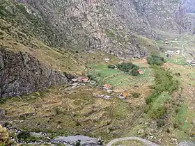 Gveleti[lower-alpha 1] (Georgian: გველეთი; Ingush: Гелате, romanized: Gelatĕ), is a village (aul) in the Kazbegi Municipality of Georgia. It is located in the Darial Gorge, on the right bank of the Devdaraki (a left tributary of the Terek river), 4 km from the border with Russia. Gelatĕ was founded by the Ingush clan (teip) Gelatkhoy (Ingush: Гелатхой).