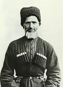 The Cherebashev settlement was located on the site of the Ingush village of Gvileti in the Darial Gorge. According to Ingush historical legends, the ancestors of the Cherbizhev's (Чербижевы) lived along the areas of the Georgian Military Road. In one of these legends, written down by B.K. Dalgat, it is said that Cherbizh (Чербыш) and the inhabitants of Gvileti managed to defeat the army of the Kabardian knyaz, who was marching on Tiflis.[6][7] In gratitude for this, the Georgian king George presented Cherbizh with land from Kazbeki to Gvileti.[8][9]