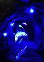 The cave was used when Korea was under Japanese rule from 1910 to 1945 for mining purposes and was staffed by forced laborers.[1] The cave complex re-opened in 2011 for tourism purposes and now has historical exhibits, but is chiefly entertainment-focused, with aquariums, sculptures, light shows, children's amusements, and other attractions, including an underground winery.[2]