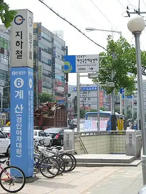 Gyesan Station (Korean: 임학역; Hanja: 林鶴驛) is a subway station on Line 1 of the Incheon Subway located at Gyesan 1,2 dong, Gyeyang-gu, Incheon. The station is nearby Kyung-in Women's College.