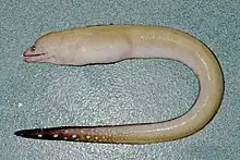 The blacktail moray eel (Gymnothorax kolpos) is a moray eel found in the western Atlantic Ocean.[2] It was first named by Eugenia B. Böhlke and James E. Böhlke in 1980.[2][3]