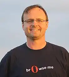 Håkon Wium Lie (born July 26, 1965) is a Norwegian web pioneer, a standards activist, and the chairman of YesLogic, developers of Prince CSS-based PDF rendering software.[1][2] He was the Chief Technology Officer of Opera Software from 1998 until the browser was sold to new owners in 2016.[3][2] He is best known for developing Cascading Style Sheets (CSS) while working with Tim Berners-Lee and Robert Cailliau at CERN in 1994.