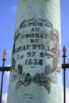 The entrance to the complex consists of a gateway of iron lances linking the two pavilions and separating them from the main square to the north. A cannon is positioned on either side of the gate, one dating from the time of Louis XV (1751), cast at the Douai cannon foundry, the other being a war prize taken from San Juan de Ulúa in 1838 during the Pastry War.[16]