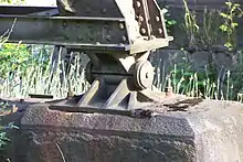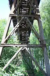 The Hølen Viaduct is an iron pendulum pillar bridge which crosses Såna. It is 130.6 meters (428 ft) long and consists of fourteen spans supported by thirteen pillars. Two spans measure 8.9 meters (29 ft), while twelve measure 9.4 meters (31 ft).[1] The bridge carried the single-tracked Østfold Line's and was situated 46.90 kilometers (29.14 mi) from Oslo Central Station.[2] The entire viaduct was built on a curve with a curve radius of 470 meters (1,540 ft).[1]