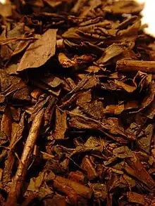 Hōjicha is often made from bancha (番茶 'common tea'), tea from the last harvest of the season. However, other varieties of hōjicha also exist, including a variety made from sencha and kukicha. Kukicha (also known as bōcha or 'twig tea') is made primarily from the twigs and stems of the tea plant rather than the leaves alone.[4]