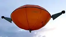 The aerial vehicle combines static and dynamic lift, mirror or symmetric rotation flight modes and flies like a balloon, airplane and helicopter. It has a gas cell and two wings with a symmetric profile which can be rotated by 180° and one Electric motor at the end of each wing. As usual with balloons, the static lift vector (buoyant gas) and the vector of payload with batteries are positioned opposed to each other. The cell does not resemble a cigar form but a rotation-symmetric Frisbee disc. The vectors of the carried components - unlike with airships - are not distributed over the total length of the body between prow, cabin and stern. Opposed to this hybrid universal aircraft shows high potentials to more efficient sustainable flight missions and therefore applications with longer abidance in the air.[13][14]