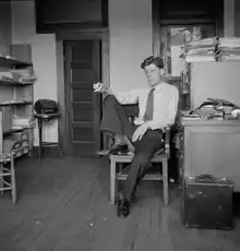 ![]() H. L. Mitchell, Secretary of the Southern Tenant Farmers Union. Union headquarters, Memphis, Tennessee, June 1938; by Dorothea Lange, for the Farm Security Administration. | |