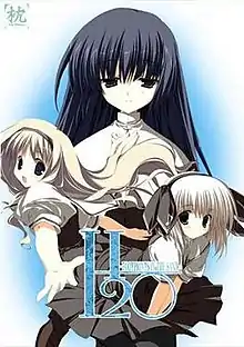 ![]() H2O original visual novel cover. Depicted are the three heroines (from left to right): Hinata, Hayami, and Otoha. | |
