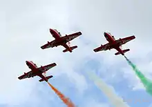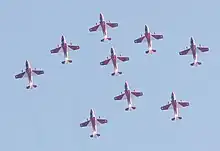 Both the Indian Naval Air Arm and the Indian Air Force have independently operated their own aerobatic display teams, Sagar Pawan and Surya Kiran respectively.[16] On 3 March 2010, a Kiran Mk II of the Sagar Pawan aerobatic team crashed into a building in Hyderabad during the Indian Aviation 2010 air show, killing both crewmembers and injuring four civilians on the ground.[17] During the 2010s, the Indian Defence Ministry placed an order for 20 Hawk Mk132 aircraft with HAL to replace the remaining Kirans assigned to the Surya Kiran display team.[18][19] By 2019, several Hawks had been issued to the Surya Kiran display team and had been used to perform its trademark aerial displays.[20]