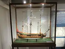 A model of the ship is on display in the Heering House in Copenhagen. Another model of the ship hangs in Mårslet Vhurch in Jutland. The ship is also seen on a 1951 stamp commemorating the 250th anniversary of the Danish Naval Academy.[7]