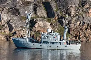 ![]() HDMS Tulugaq (Y388) in Sisimiut Harbor, Greenland on September 4, 2017, prior to decommissioning. | |