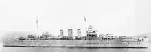 The propulsion machinery consisted of eight Yarrow superheated boilers feeding Curtis high-pressure and Parsons low-pressure geared turbines.[1] This delivered up to 80,000 shaft horsepower to the cruiser's four three-bladed propellers.[1] The cruiser's top speed was 31 knots (57 km/h; 36 mph), with a range of 2,270 nautical miles (4,200 km; 2,610 mi), while her economical range and cruising speed was 10,000 nautical miles (19,000 km; 12,000 mi) at 11 knots (20 km/h; 13 mph).[3]