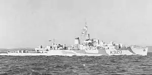 The River-class frigate was designed by William Reed of Smith's Dock Company of South Bank-on-Tees. Originally called a "twin-screw corvette", its purpose was to improve on the convoy escort classes in service with the Royal Navy at the time, including the Flower-class corvette. The first orders were placed by the Royal Navy in 1940 and the vessels were named for rivers in the United Kingdom, giving name to the class. In Canada they were named for towns and cities though they kept the same designation.[5] The name "frigate" was suggested by Vice-Admiral Percy Nelles of the Royal Canadian Navy and was adopted later that year.[6]