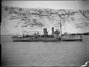 ![]() At Hvalfjord, Iceland after a patrol in the North Atlantic in search of the German battleship Tirpitz, January 1942 | |