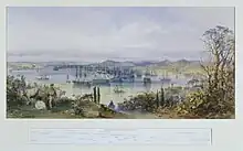 ![]() HMS Albion entering the Bosphorus, partially dismasted after the action of 17 October 1854. | |