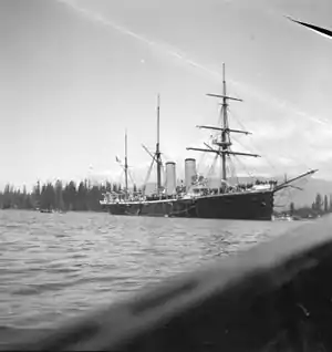 ![]() Amphion moored at Coal Harbour, Vancouver, while serving on the Pacific Station in British Columbia, Canada, 1900. | |