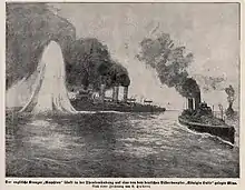 The target was SMS Königin Luise, a former Hamburg-Heligoland excursion boat that had been converted to an auxiliary minelayer by the Germans. They had planned to mount a pair of 8.8-centimetre (3.5 in) guns on board, but they did not have the time to do so; her only armament was a pair of lighter guns and 180 mines. On the night of 4 August, she had departed Emden and headed into the North Sea to lay mines off the Thames Estuary, which she began to do at dawn.[10]