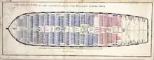 In September 1814 Captain Walker took command of a squadron that carried the advance guard of Major General Keane's army, which was moving to attack New Orleans.[13] Also present in the squadron were the troopships HMS Alceste, HMS Belle Poule,[14] HMS Dover, and HMS Fox,[15] and the warship HMS Norge. Bedford arrived off Chandeleur Island on 8 December 1814 and the troops started to disembark eight days later. Sir Alexander Cochrane and Rear-Admirals Pulteney Malcolm and Edward Codrington went ashore with the army.[16] Between 12 and 14 December Bedford's boats, under the command of Lieutenant John Franklin, participated in the Battle of Lake Borgne, in which she lost one man killed and four or five men wounded, including Franklin and two other officers.[17] In 1847 the Admiralty issued a clasp (or bar) marked "14 Dec. Boat Service 1814" to survivors of the boat service who claimed the clasp to the Naval General Service Medal.[lower-alpha 1]