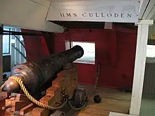 HMS Culloden was a 74-gun third-rate ship of the line of the Royal Navy, built at Deptford Dockyard, England, and launched on 18 May 1776.[1] She was the fourth warship to be named after the Battle of Culloden, which took place in Scotland in 1746 and saw the defeat of the Jacobite rising.