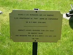 In 1956, Captain T.C. Pullen, RCN, sailed HMCS Labrador on an expedition through the Northwest Passage. During this voyage Labrador recovered two Admiralty Pattern anchors on Fury Beach, Somerset Island. The anchors were left there in 1825 by the crews of Fury and Hecla, together with stores, boats, and other items. The anchors had been a landmark for sailors for 136 years.