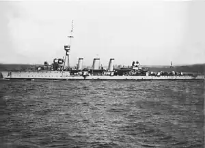 She was launched on 14 May 1914 at William Beardmore and Company shipyard. On her commissioning she was assigned as the leader to the 2nd Destroyer Flotilla of the Harwich Force, guarding the eastern approaches to the English Channel. On 4 May 1916, she took part in the shooting down of Zeppelin L 7. At the Battle of Jutland, she was the flagship of the 1st Light Cruiser Squadron under Commodore E.S. Alexander-Sinclair. She was the first ship to report the presence of German ships, triggering the battle. Galatea was also the first to receive a hit by the German light cruiser SMS Elbing, but no explosion occurred. She was sold for scrapping on 25 October 1921.[4] Mount Galatea in Alberta, Canada is named after this ship.