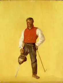 Billy Waters, a member of the crew who lost his right leg as a result of falling from the topsail yard, unable to work he became a famous London street entertainer and was elected ‘king of the beggars’ shortly before his death in 1823