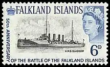 In 1964 a Falklands Islands commemorative stamp incorrectly pictured Glasgow instead of HMS Kent.[37]