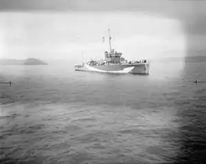 After being transferred to the 37th Escort Group in September and the 39th Escort Group in October, Hastings was retired at Belfast on 19 November 1943 after comparison of her age and poor record in the field indicated the advantages of using her crew to man newly constructed warships. She was laid-up briefly at Hartlepool before re-fit as a training target for the 3rd Submarine Squadron in Holy Loch from October 1944 until February 1946. She was paid-off on 16 February and was listed for disposal. She was sold for breaking up in April, and arrived at the breaker's yard at Troon on 10 April 1946 to be broken up by West of Scotland Shipbreakers.[1]