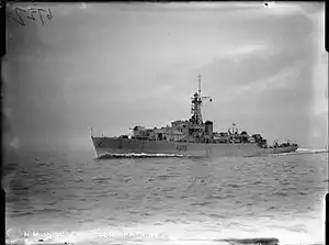 HMS Loch Katrine was a Loch-class frigate of the British Royal Navy, built by Henry Robb at Leith, Scotland, and named after Loch Katrine in Scotland. The ship was laid down on 31 December 1943, launched on 21 August 1944, and completed and commissioned in December 1944. The ship served in World War II as a convoy escort in the Atlantic, and afterwards in the Indian Ocean. Decommissioned in May 1946, the ship was sold to New Zealand in 1948, and renamed HMNZS Rotoiti (F625). The ship saw active service during the Korean War, and was finally sold for scrap in 1965.[1]