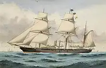 In common with all other Royal Navy wooden screw gunvessels, the Cormorants were rigged as barques, that is with three masts, with the fore and main masts square rigged, and the mizzen fore-and-aft rigged.[3]