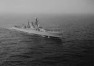 HMS Naiad (F39) was a Leander-class frigate of the Royal Navy (RN). Like the rest of the class, Naiad was named after a figure or figure of mythology, in this case, the Naiads of Greek mythology. Naiad was built by Yarrow Shipbuilders of Scotstoun. She was launched on 4 November 1963 and commissioned on 15 March 1965.[1]
