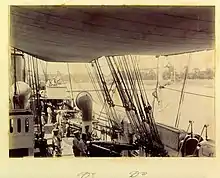 ![]() HMS Pylades anchored at Hobsons Bay, Port Phillip c. 1895. | |