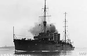 HMS Southampton was a Town-class light cruiser built for the Royal Navy in the 1910s. She was a member of the Chatham sub-class of the Town class. The ship survived the First World War and was sold for scrap in 1926.