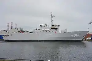 HNLMS Mercuur (A900) is a submarine support ship of the Royal Netherlands Navy. The ship was built and designed specially to support the Dutch submarines. She entered service on 21 August 1987, and is the only surface vessel attached to the Dutch submarine service.[1]